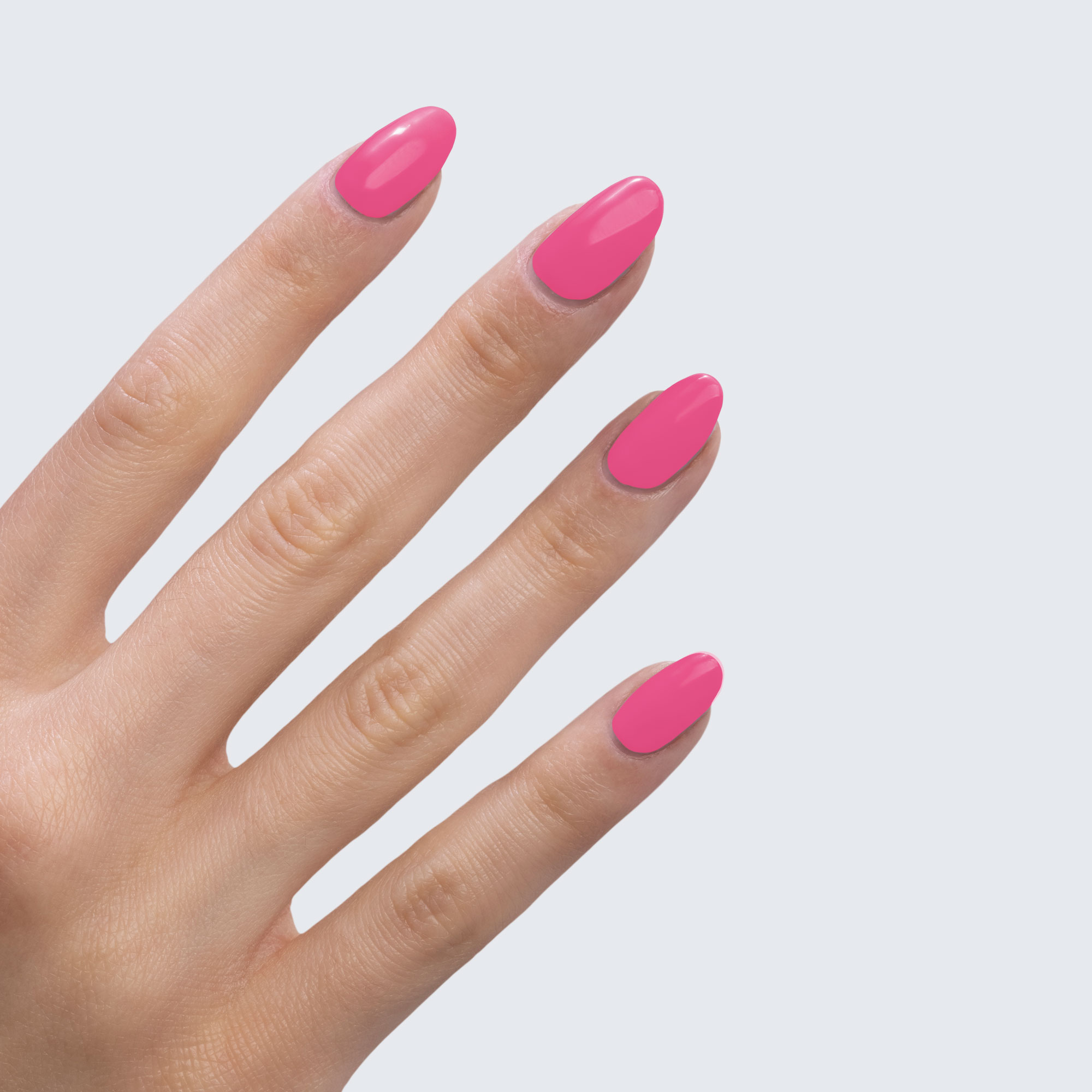 Bubble gum pink. Neon. Medium. Opaque. Cool undertone.